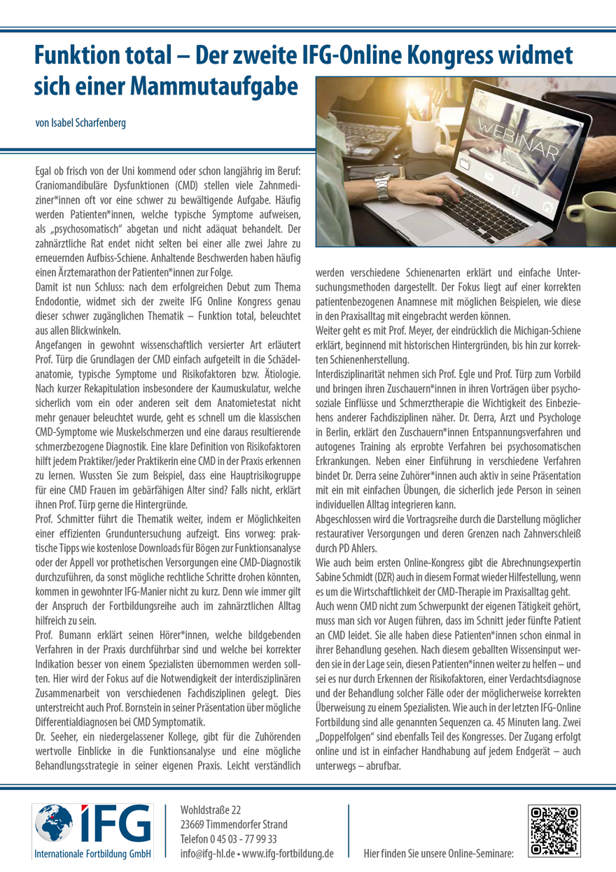 Online-Kongress: Funktion Total – TEIL 2 – Wie Sie in Ihrer Praxis Funktionsstörungen erkennen, behandeln und verhindern